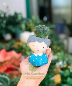 Chậu Cây Con Trai Áo Xanh Chấm Bi Trắng